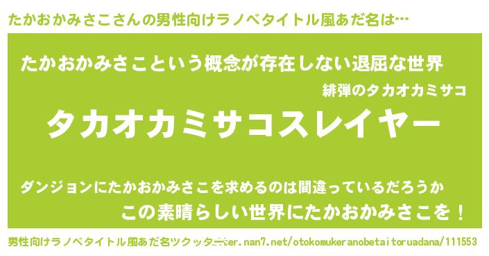 | ヘコむあだ名 | 『たかおかみさこ(笑)』『たかっ子』 |
