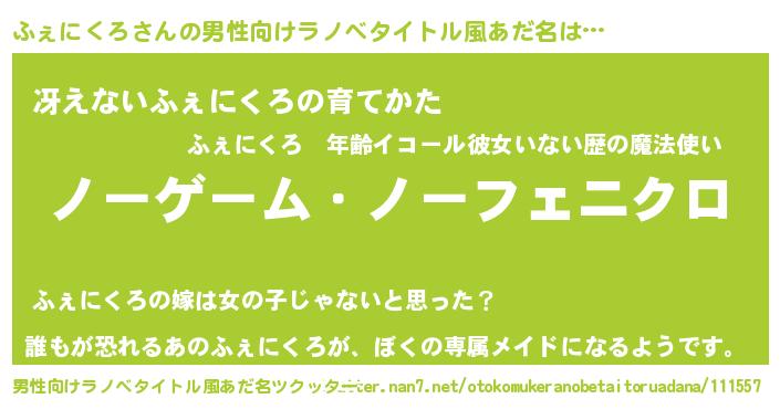 | ヘコむあだ名 | 『ふぇにくろ(遠い目)』『ふぇお』 |