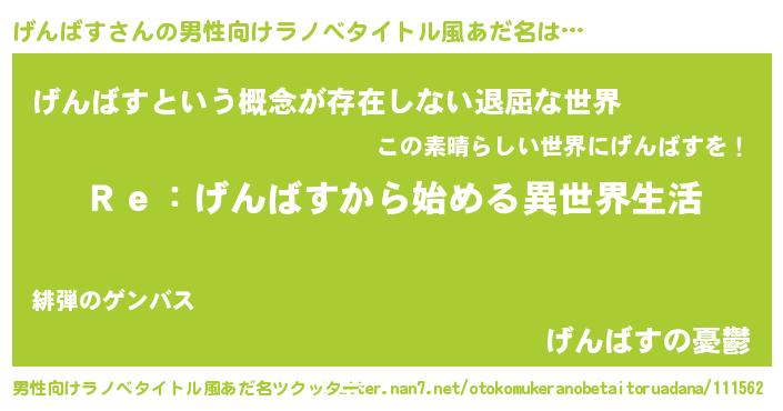 | 女子向けラノベタイトル風あだ名 | 『闇のげんばす』 |