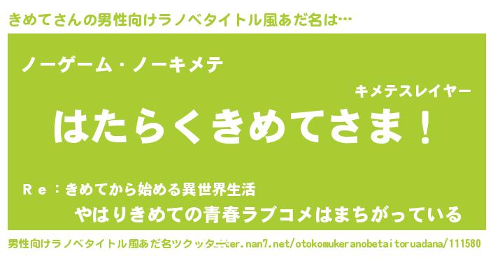 きめてさんの男性向けラノベタイトル風あだ名をツクッター!
