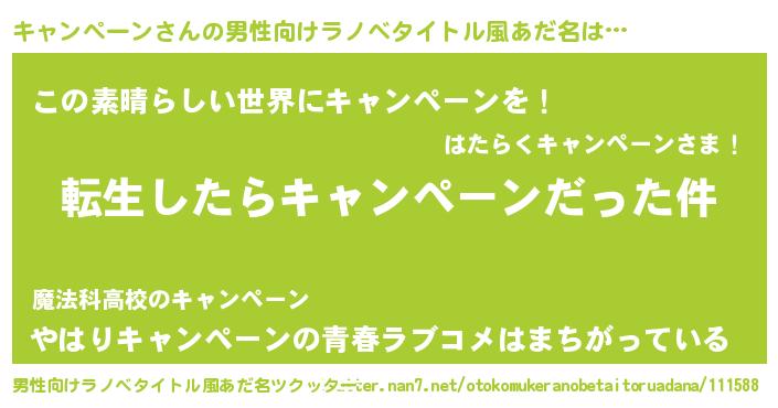 | 胡散臭い通販商品みたいなあだ名 | 『世界中を虜にした100年もののヴィンテージワイン…その名も「キャンペーン」』 |