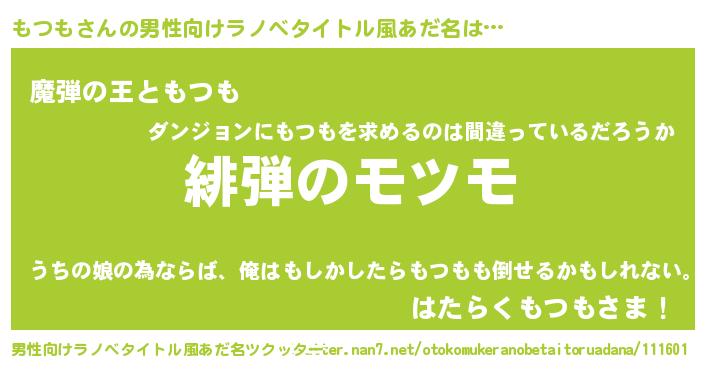 | 意味不明あだ名 | 『住所不定無職もつも(65歳)』『自称もつも』 |