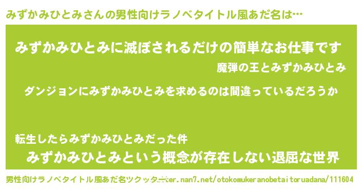 女子向けラノベタイトル風あだ名 | 『みずかみひとみは平凡を望む』 |