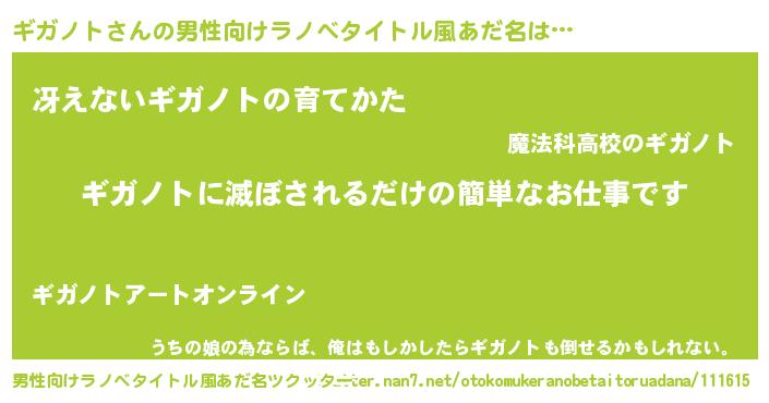 | ヒーロー風カッコイイあだ名 | 『ウルトラギガノトマン』『ネオギガノト』 |