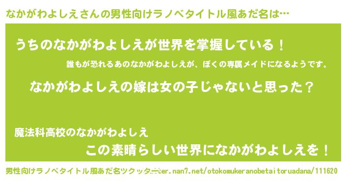 | 女子向けラノベタイトル風あだ名 | 『なかがわよしえ様がみてる』 |