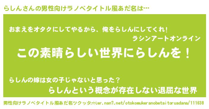 | 胡散臭い通販商品みたいなあだ名 | 『あなたにだけ特別に提供する世界で10本だけ現存している希少なブランデー…その名も「らしん」』 |