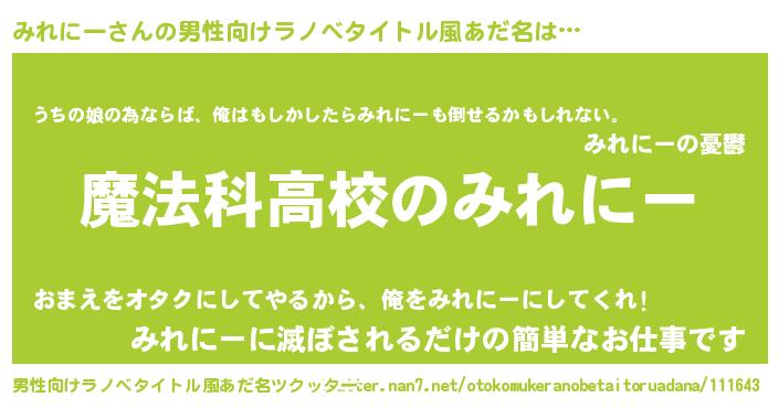 | 女子向けラノベタイトル風あだ名 | 『みれにーなんてお断りですっ。』 |