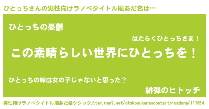 | 意味不明あだ名 | 『住所不定無職ひとっち(53歳)』 |