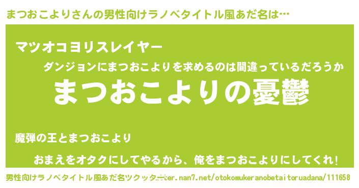 | 女子向けラノベタイトル風あだ名 | 『まつおこより姫と円卓の騎士』 |