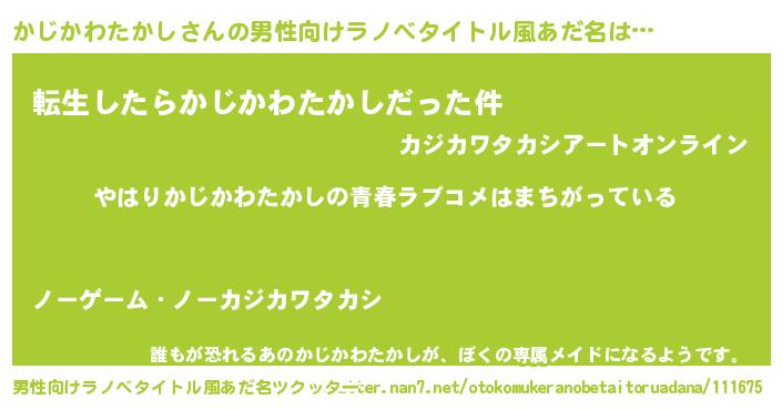 | 女子向けラノベタイトル風あだ名 | 『かじかわたかしの雑貨屋さん』 |