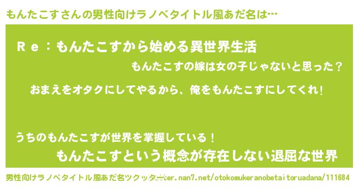 女子向けラノベタイトル風あだ名 | 『もんたこす夫妻のなれそめ』 |