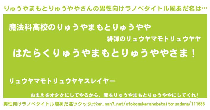 | 肩書あだ名 | 『りゅうやまもとりゅうややプロデューサー』 |
