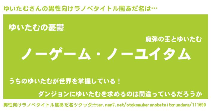 | 女子向けラノベタイトル風あだ名 | 『死神ゆいたむの再婚』 |