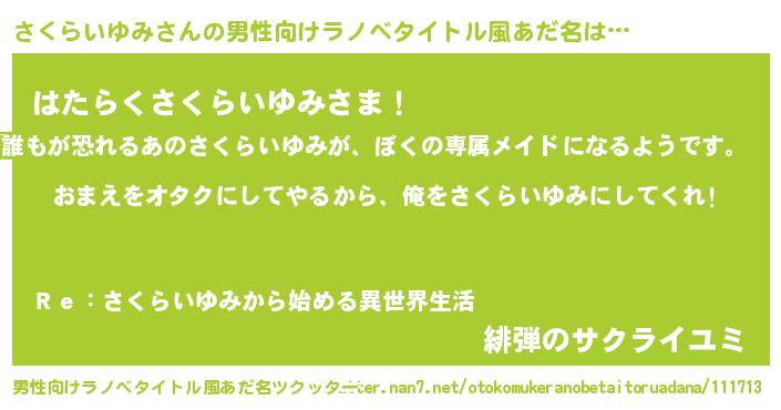 | 胡散臭い通販商品みたいなあだ名 | 『100人中100人が認めたイリジウム磁石…その名も「さくらいゆみ」』 |
