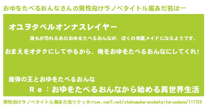 | 女子向けラノベタイトル風あだ名 | 『おゆをたべるおんな恋絵巻』 |