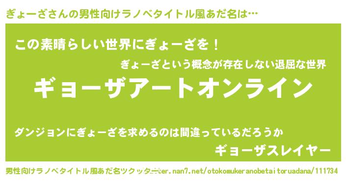 | 女子向けラノベタイトル風あだ名 | 『誰かこのぎょーざを説明してください! ~契約から始まるウェディング~』 |
