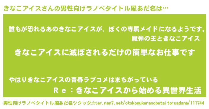 | ヒーロー風カッコイイあだ名 | 『ネオキナコアイス』『仮面キナダー』 |