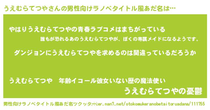 うえむらてつやさんの男性向けラノベタイトル風あだ名をツクッター!