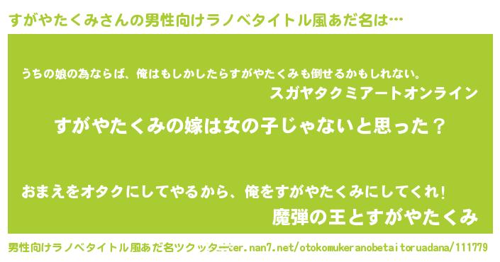 | 女子向けラノベタイトル風あだ名 | 『すがやたくみ様がみてる』 |