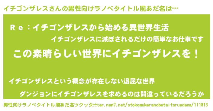 | 胡散臭い通販商品みたいなあだ名 | 『あなたにだけ特別に提供する世界で10本だけ現存している希少なブランデー…その名も「イチゴンザレス」』 |