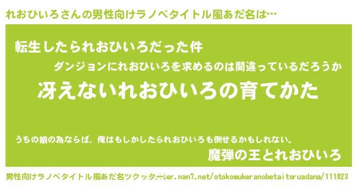 | 女子向けラノベタイトル風あだ名 | 『男装れおひいろの憂鬱な任務』 |