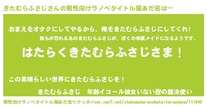 | ヘコむあだ名 | 『きたむらふさじ(笑)』『豆乳』 |