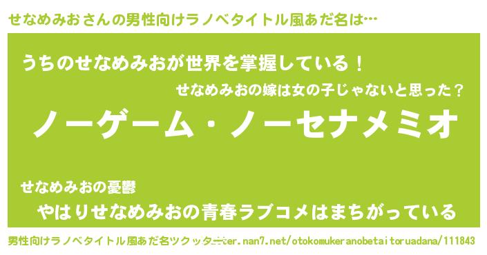 | ヒーロー風カッコイイあだ名 | 『慈愛の使者せなめみお』『炎刃騎士セナ』 |
