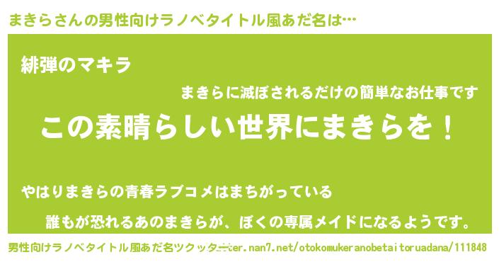 まきらさんの男性向けラノベタイトル風あだ名をツクッター!