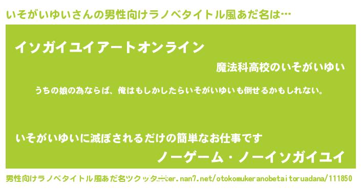 いそがいゆいさんの男性向けラノベタイトル風あだ名をツクッター!