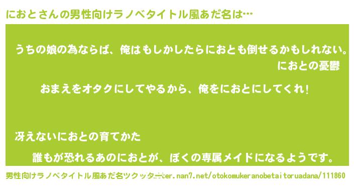 | 女子向けラノベタイトル風あだ名 | 『におと夫妻のなれそめ』 |