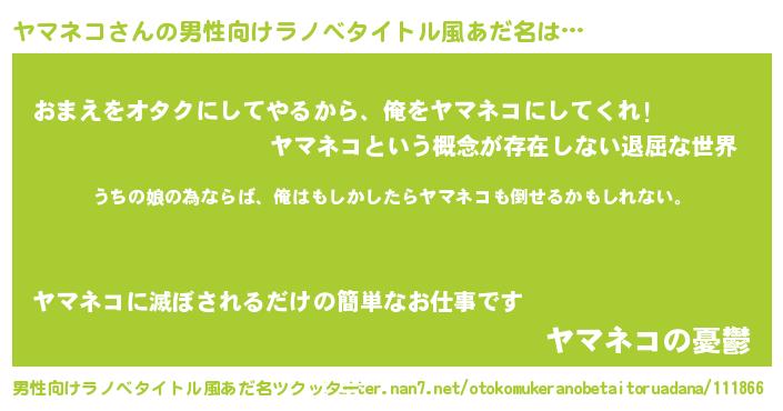 | 胡散臭い通販商品みたいなあだ名 | 『運命の人と巡り会える高級そうな絵画…その名も「ヤマネコ」』 |