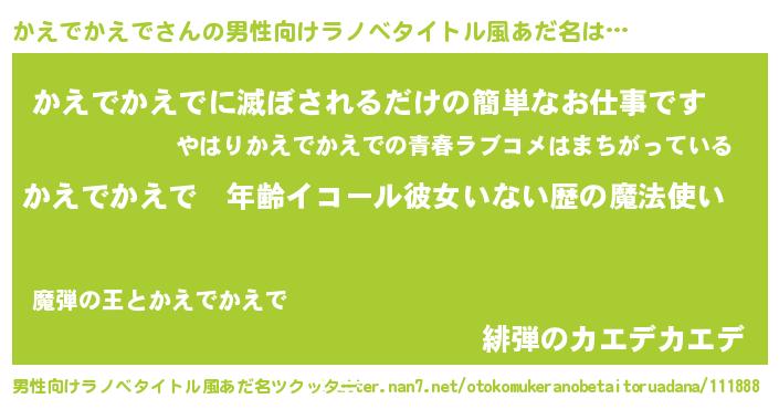 | 女子向けラノベタイトル風あだ名 | 『かえでかえでの玉の輿計画!』 |