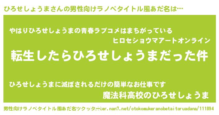| 女子向けラノベタイトル風あだ名 | 『ひろせしょうまの玉の輿計画!』 |