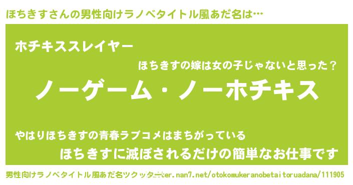 | 女子向けラノベタイトル風あだ名 | 『死神ほちきすの再婚』 |