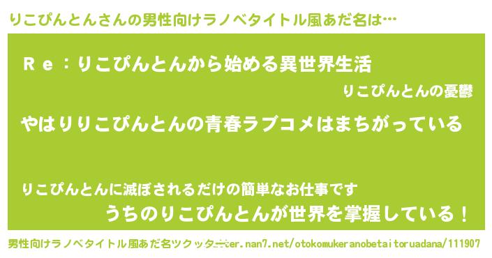 | 女子向けラノベタイトル風あだ名 | 『りこぴんとんの雑貨屋さん』 |