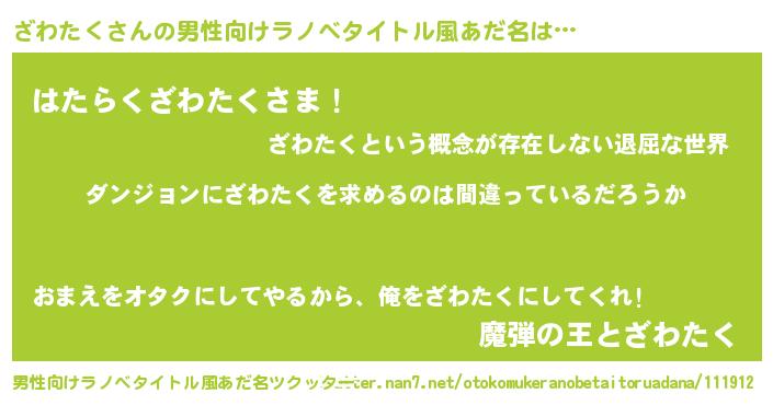 | 胡散臭い通販商品みたいなあだ名 | 『伝統あるサプリメント…その名も「ざわたく」』 |
