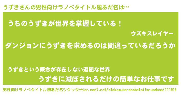 | ヒーロー風カッコイイあだ名 | 『魔戒騎士ウズ』『ネオウズキ』 |