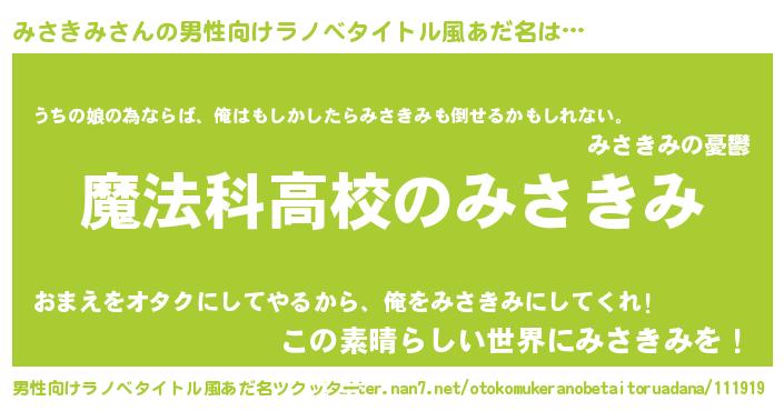 | ヒーロー風カッコイイあだ名 | 『サイバー戦士ミサキミ』『仮面ミサダー』 |