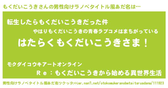| ヒーロー風カッコイイあだ名 | 『サイバー戦士モクダイコウキ』 |