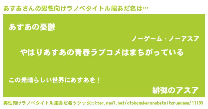 | 女子向けラノベタイトル風あだ名 | 『あすあの雑貨屋さん』 |