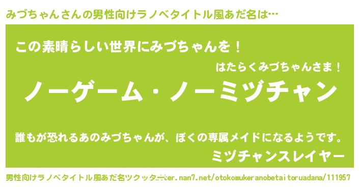 | ヘコむあだ名 | 『みづちゃん(笑)』『みづ太郎』 |