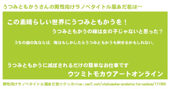 | 女子向けラノベタイトル風あだ名 | 『うつみともかうの婚約者』 |