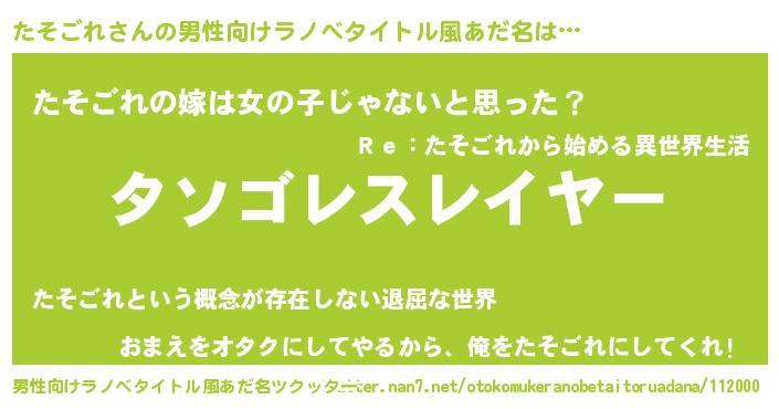 | ヒーロー風カッコイイあだ名 | 『黄金騎士タソ』『天空の使者たそごれ』 |
