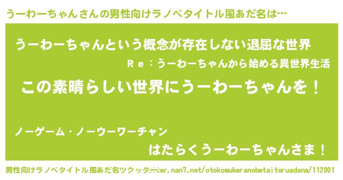 | 意味不明あだ名 | 『住所不定無職うーわーちゃん(39歳)』 |
