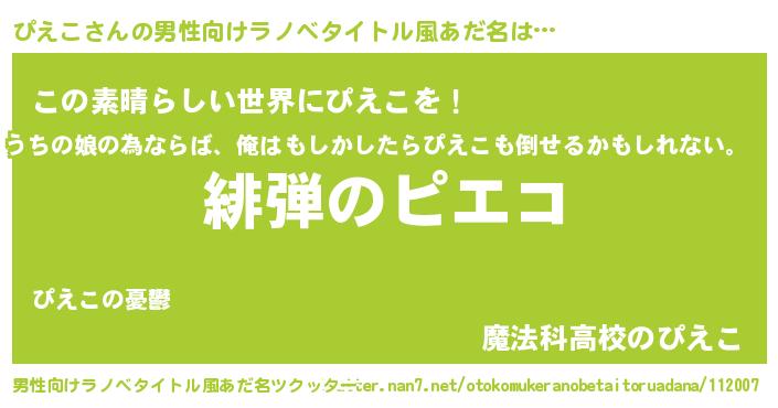 | 女子向けラノベタイトル風あだ名 | 『シンデレラぴえこ家の靴箱館』 |