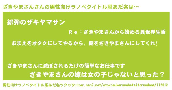 | 女子向けラノベタイトル風あだ名 | 『ざきやまさん夫妻のなれそめ』 |