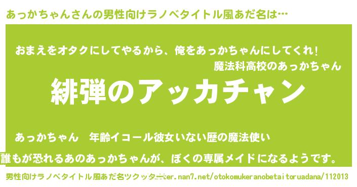 | ヒーロー風カッコイイあだ名 | 『正義の使者あっかちゃん』 |