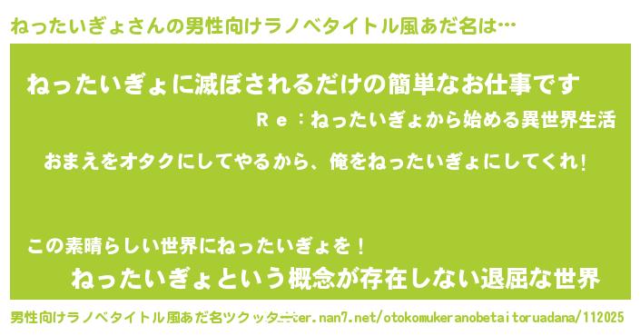 | 女子向けラノベタイトル風あだ名 | 『ねったいぎょ恋絵巻』 |