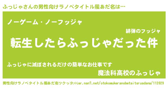 | ヘコむあだ名 | 『ふっじゃ(笑)』『ふっ太郎』 |