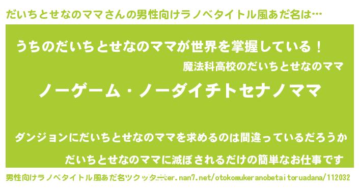 | 女子向けラノベタイトル風あだ名 | 『死神だいちとせなのママの再婚』 |